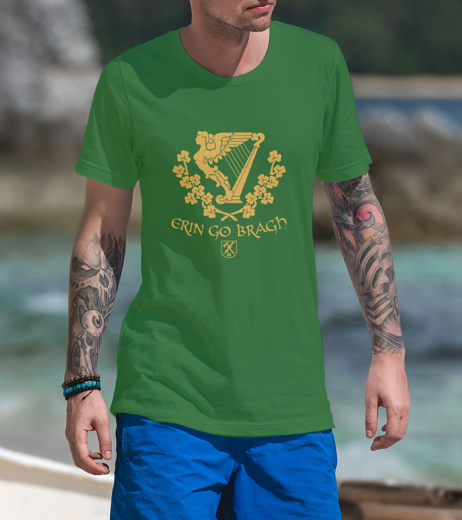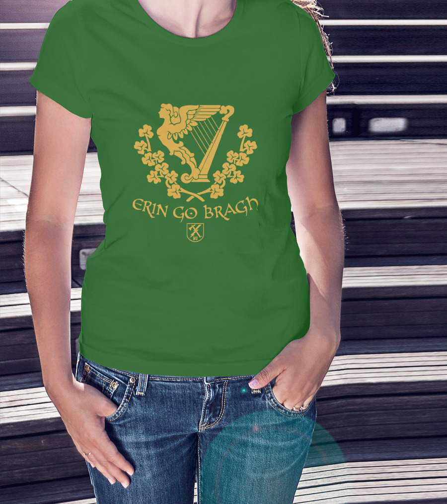Erin Go Bragh Irish Harp And Shamrock Emblem T-Shirt