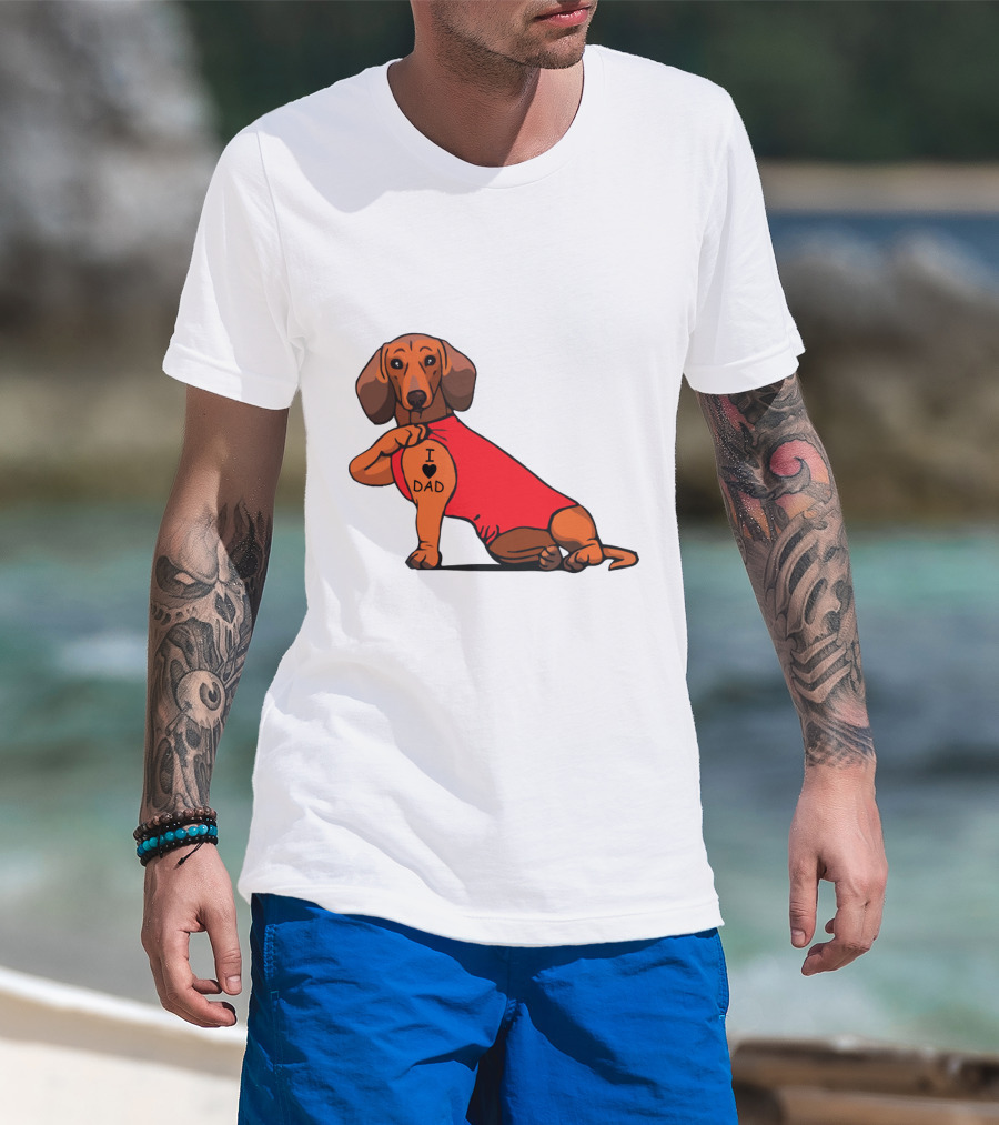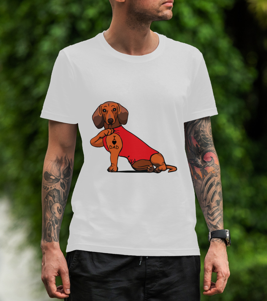 Dachshund I Love Dad Tattoo Red T-Shirt