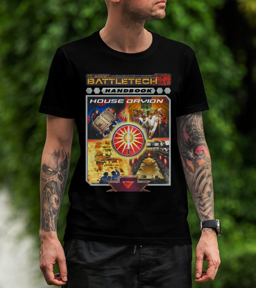 The Classic BattleTech Handbook House Davion T-shirt is designed for everyday wear and a consistent fit. Fabric is pre-shrunk ring-spun cotton with durable stitching. See the size chart below for exact measurements.