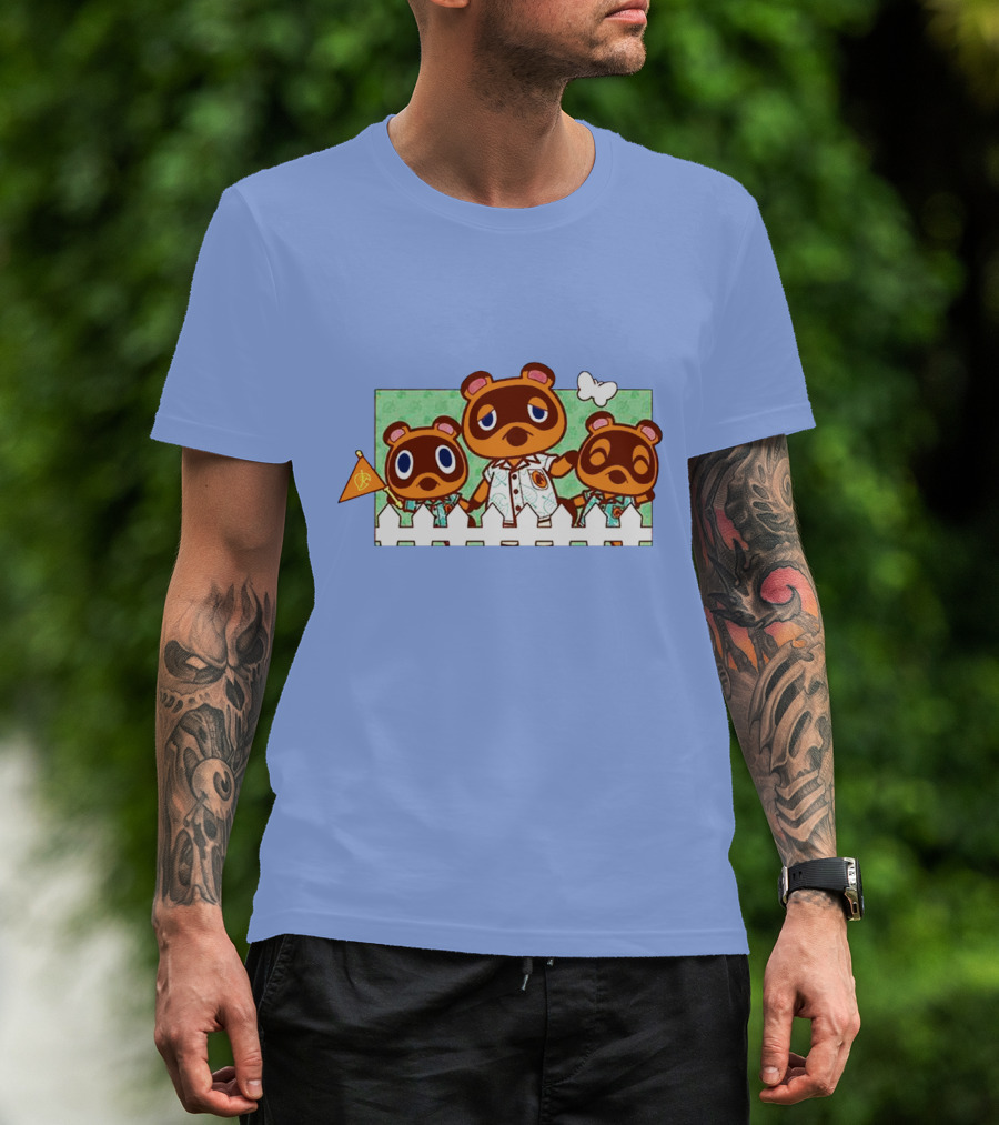 The Animal Crossing New Horizons Tom Nook and Timmy and Tommy Trio Merch T-shirt is designed for everyday wear and a consistent fit. Fabric is pre-shrunk ring-spun cotton with durable stitching. See the size chart below for exact measurements.