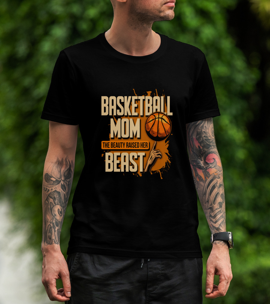 Basketball Mom The Beauty Raised Her Beast Basketball Splatter T-Shirt
