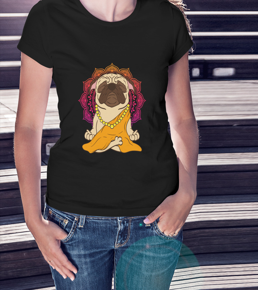Buddhism Meditation Yoga Pug With Mandala And Beads T-Shirt