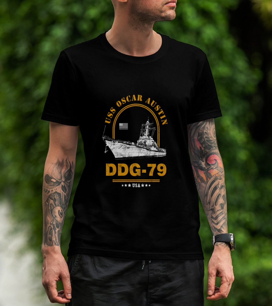 USS Oscar Austin DDG-79 USA Navy Ship Flag Stars T-Shirt