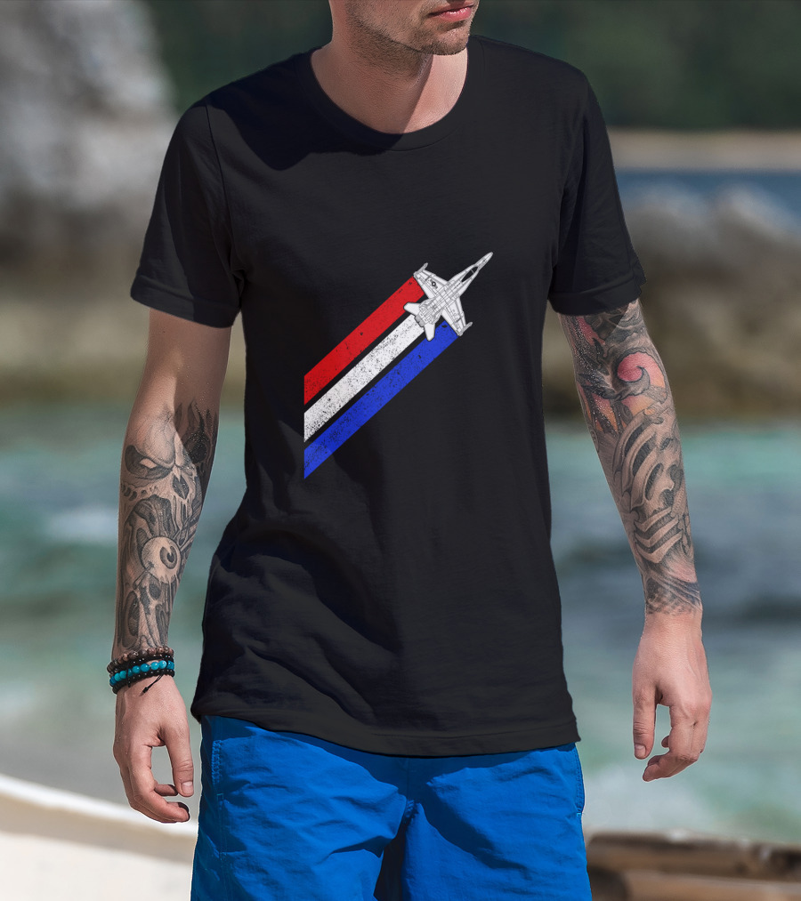 F18 Hornet Airplane Schematic Red White Blue Vintage Stripes T-Shirt