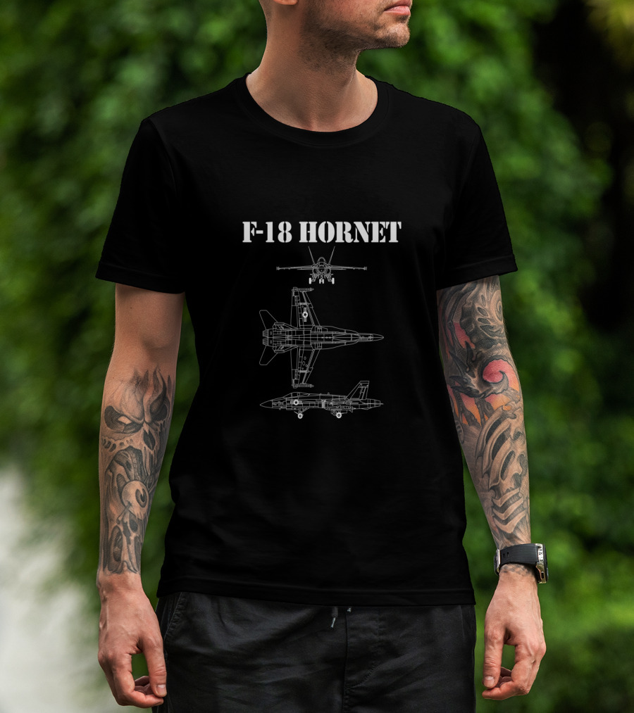 The F18 Hornet Airplane Schematic Diagram T-shirt is designed for everyday wear and a consistent fit. Fabric is pre-shrunk ring-spun cotton with durable stitching. See the size chart below for exact measurements.