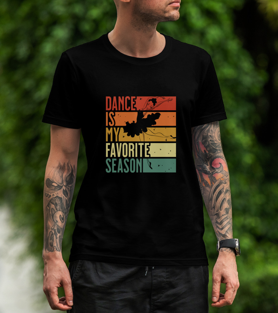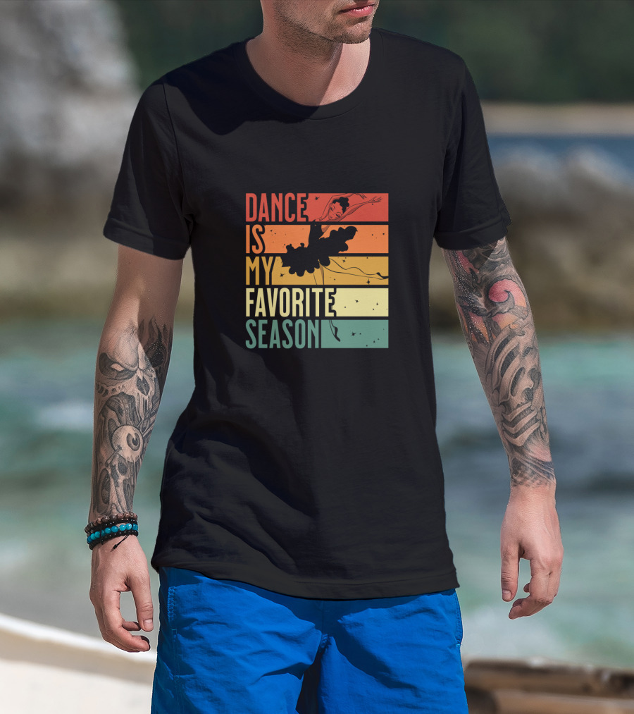 Dance Is My Favorite Season Ballerina Silhouette Retro Sunset Stripes T-Shirt