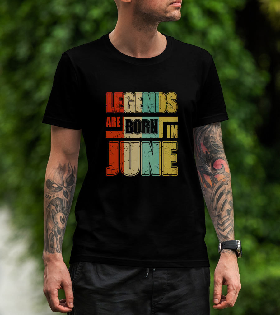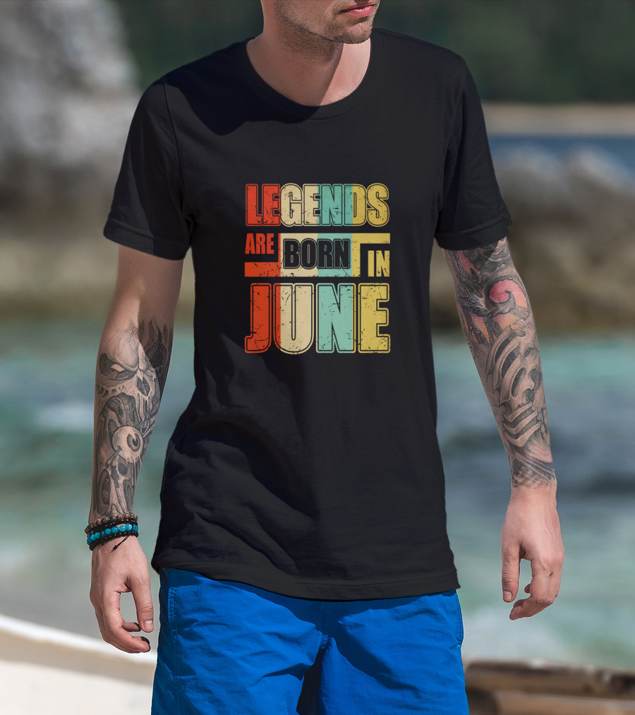 The Vintage Colorful Legends Are Born In June T-shirt is designed for everyday wear and a consistent fit. Fabric is pre-shrunk ring-spun cotton with durable stitching. See the size chart below for exact measurements.
