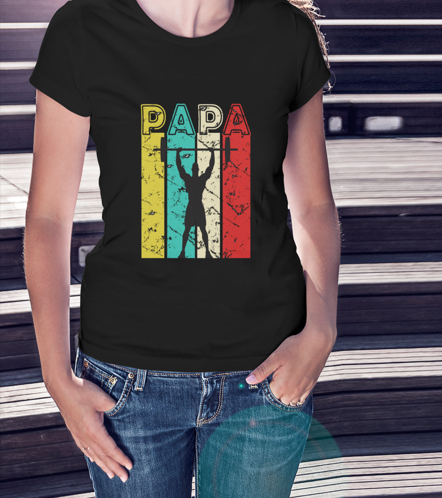 Papa Vintage Weightlifting Silhouette Retro Colors T-Shirt