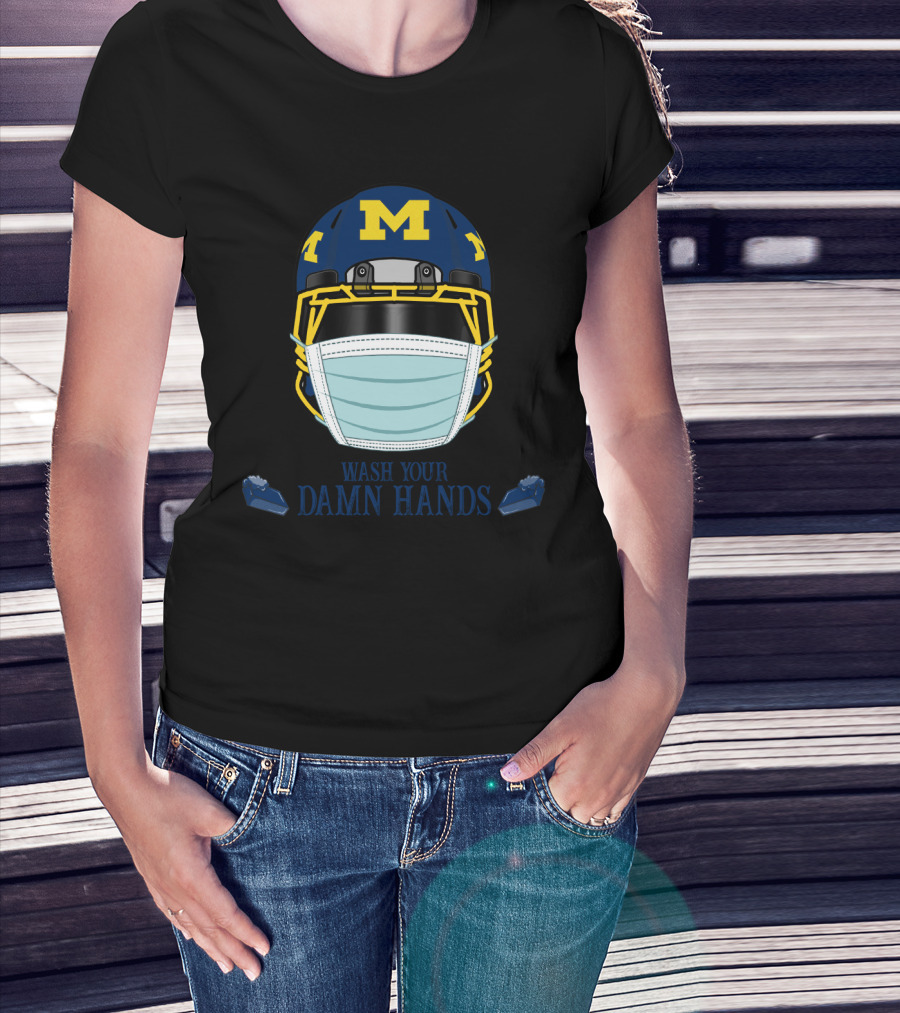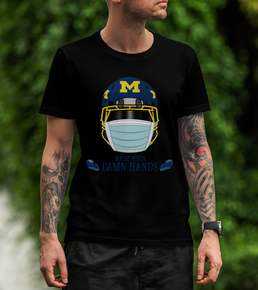 DH 67 Michigan Wolverines M Helmet Wash Your Damn Hands T-Shirt