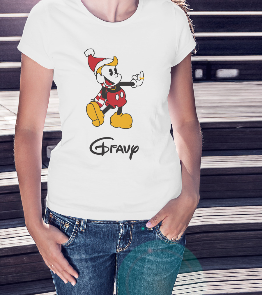 Gravy Christmas Cartoon Character With Santa Hat And Scarf T-Shirt