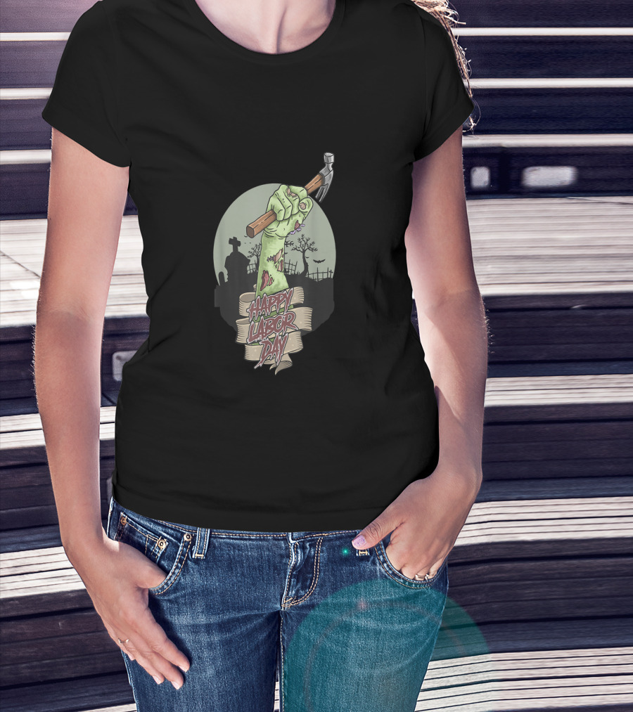 Happy Labor Day Zombie Graveyard Hammer T-Shirt