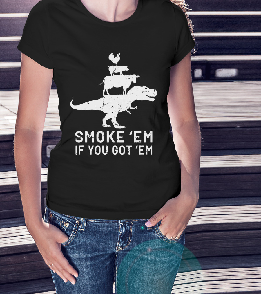 Smoke Em If You Got Em Dinosaur BBQ Grill Stacked Animals T-Shirt