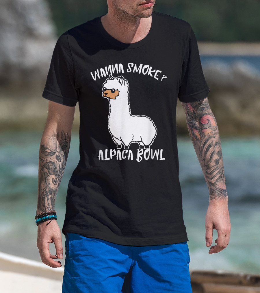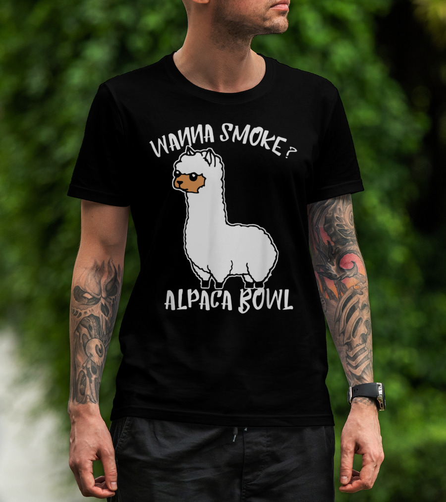 The Wanna Smoke Alpaca Bowl T-shirt is designed for everyday wear and a consistent fit. Fabric is pre-shrunk ring-spun cotton with durable stitching. See the size chart below for exact measurements.
