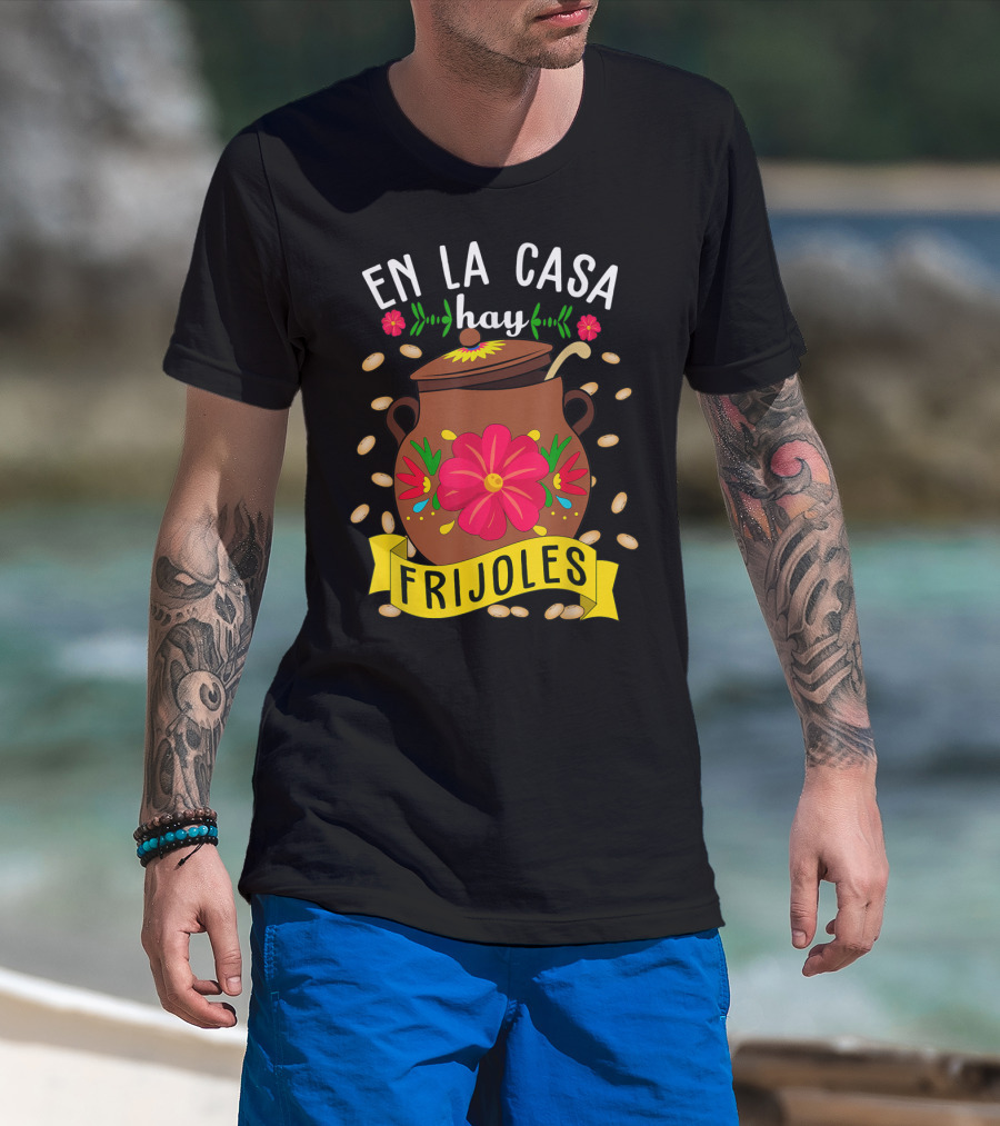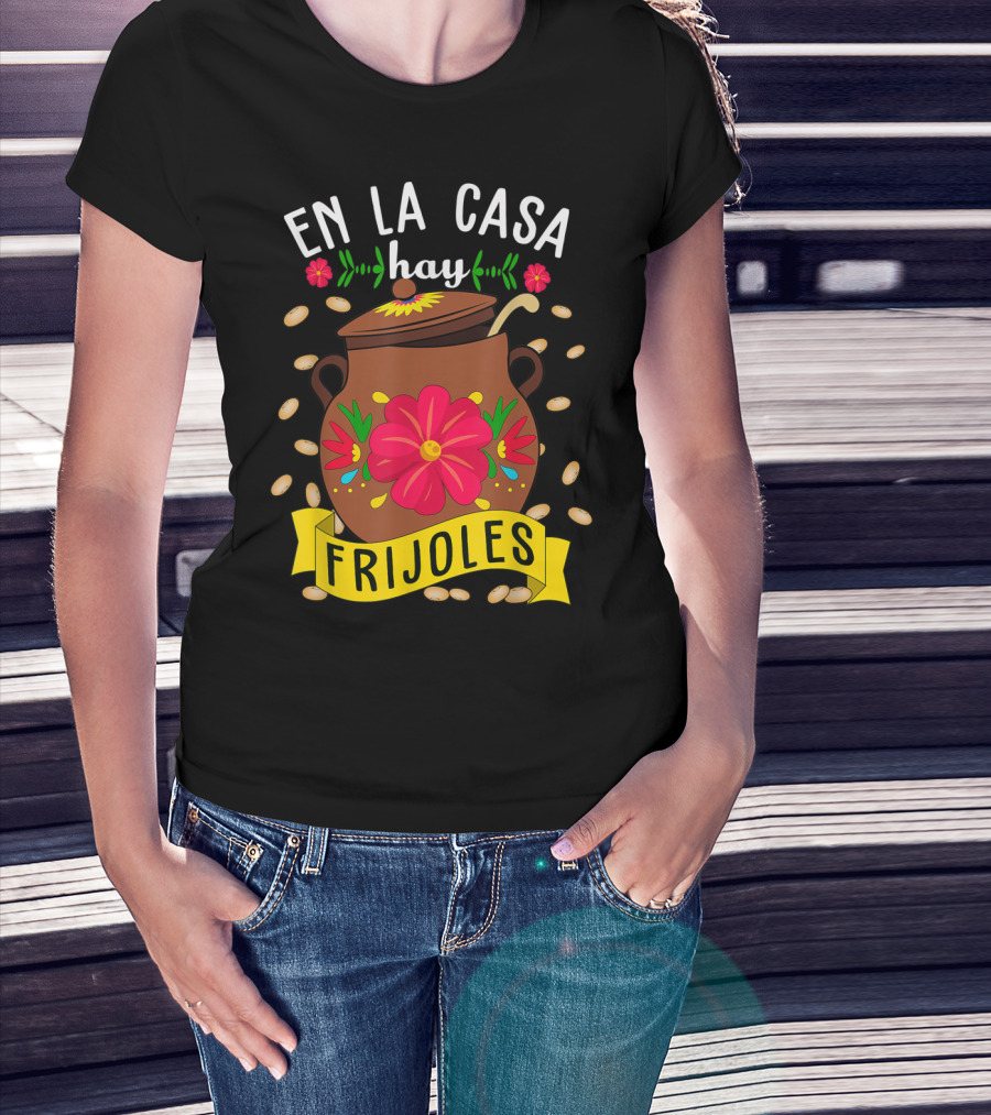 En La Casa Hay Frijoles Funny Mexican Mom Food Pot With Flowers And Beans T-Shirt