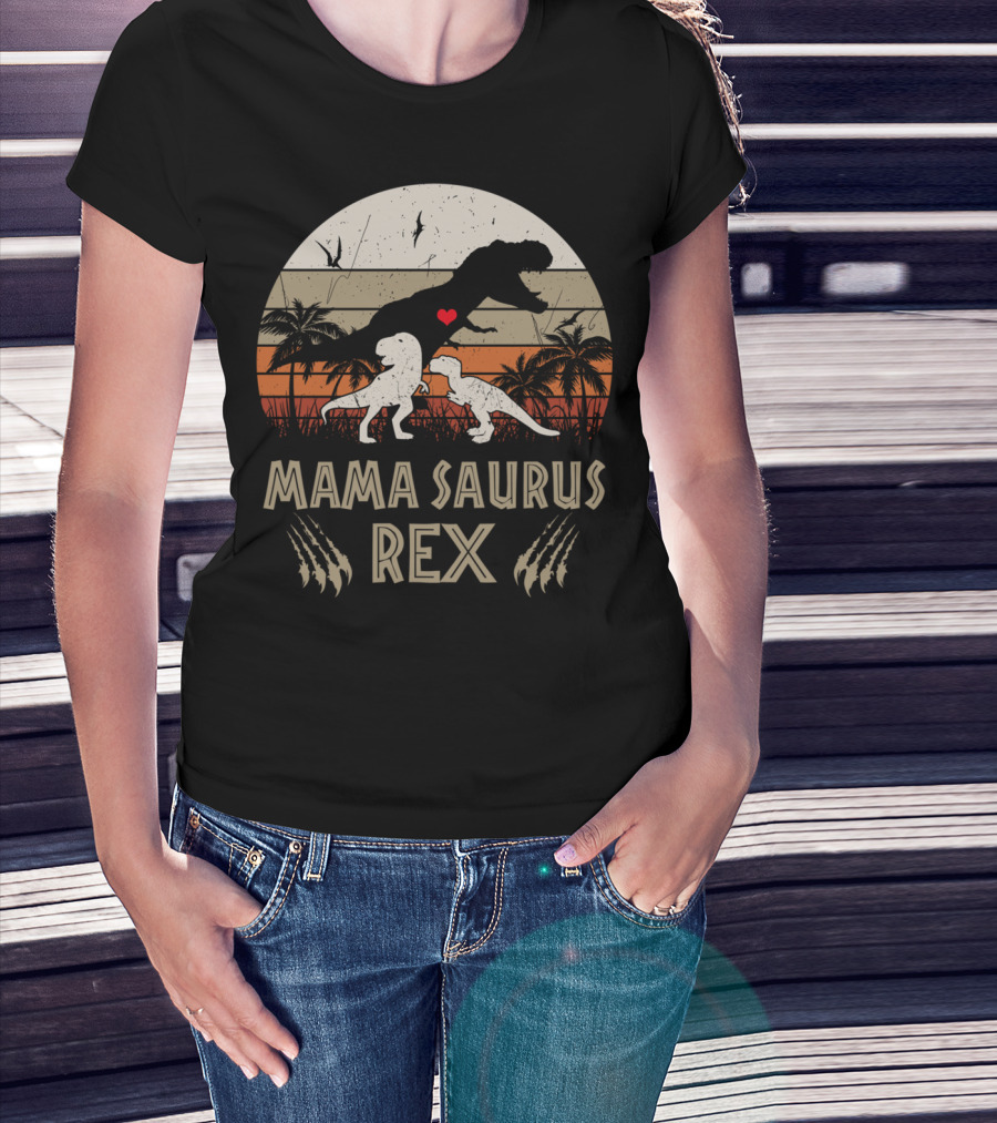 Mamasaurus Rex Cool Mom Dinosaur Scene With Heart And Claw Marks T-Shirt