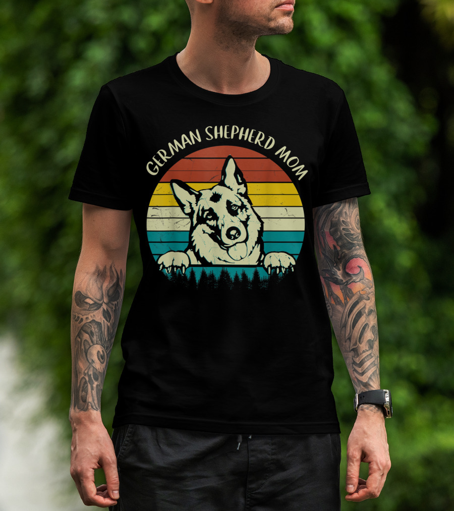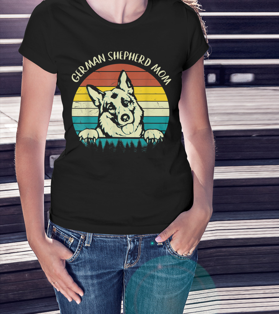 The German Shepherd Mom Retro Sunset T-shirt is designed for everyday wear and a consistent fit. Fabric is pre-shrunk ring-spun cotton with durable stitching. See the size chart below for exact measurements.
