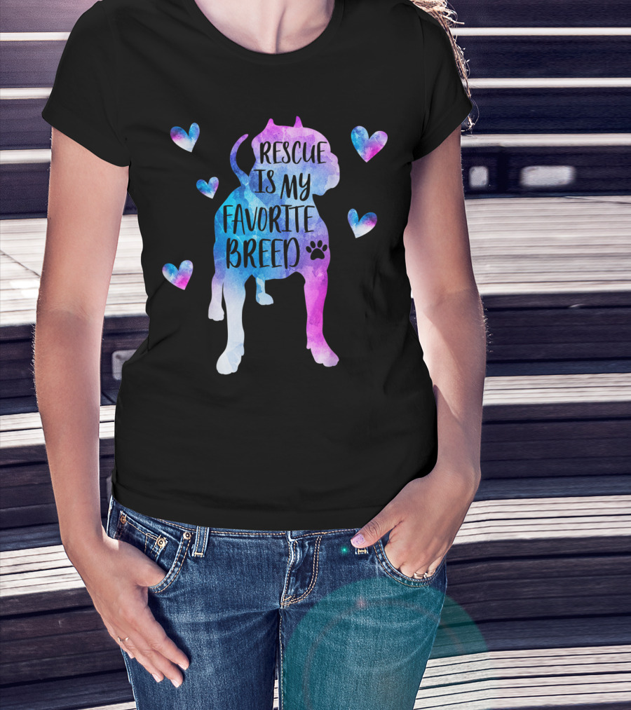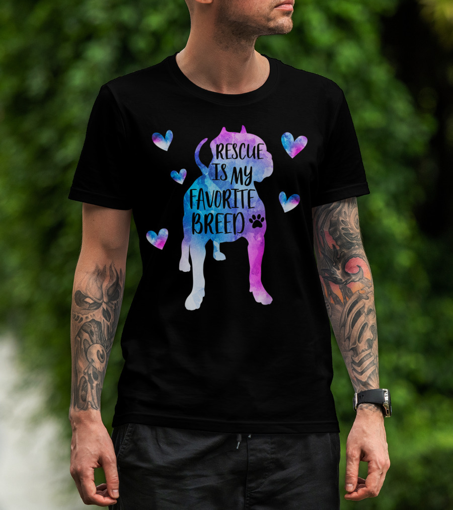 Rescue Is My Favorite Breed Watercolor Pitbull Hearts T-Shirt