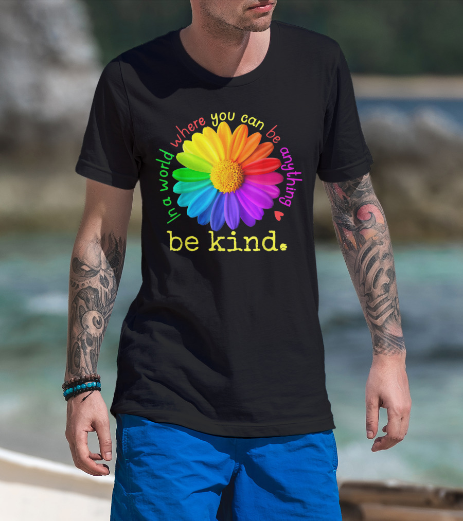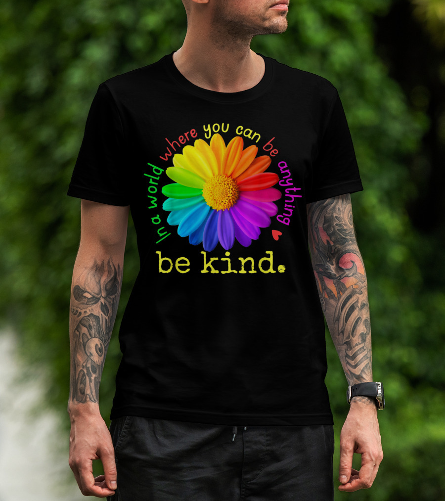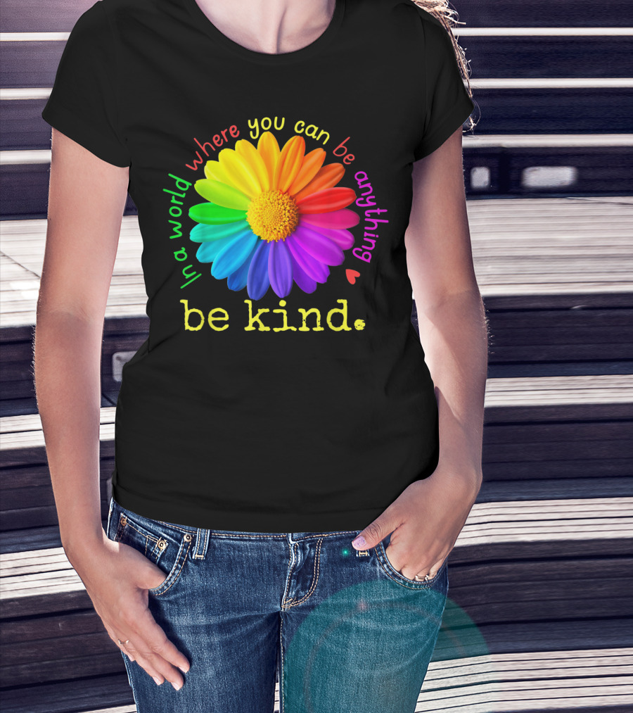 Autism Be Kind In A World Where You Can Be Anything Rainbow Flower T-Shirt