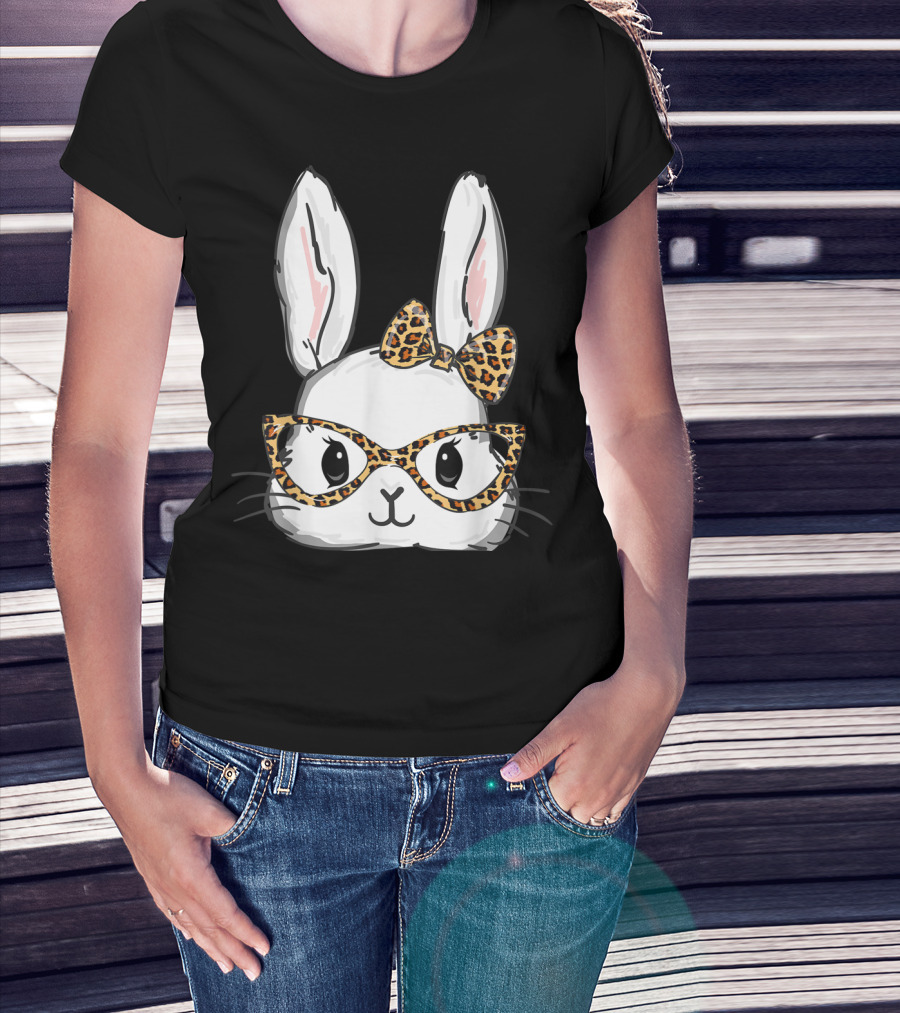 Bunny Rabbit Leopard Glasses Bow Easter T-Shirt