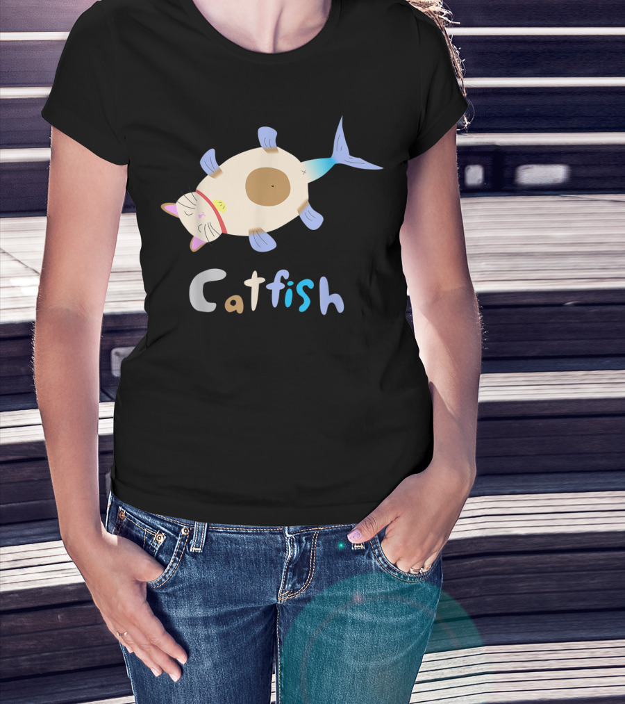 Catfish Sleeping Cat Head Fish Body Playful T-Shirt