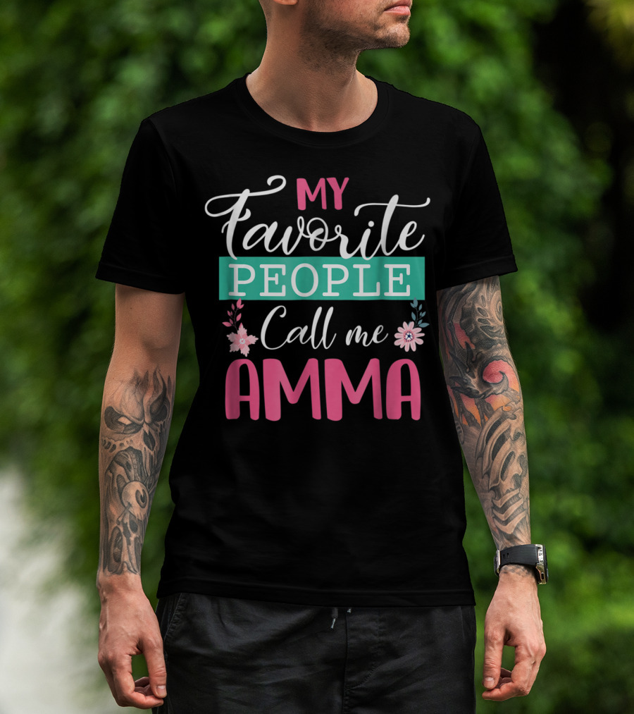 The My Favorite People Call Me Amma Flowers T-shirt is designed for everyday wear and a consistent fit. Fabric is pre-shrunk ring-spun cotton with durable stitching. See the size chart below for exact measurements.