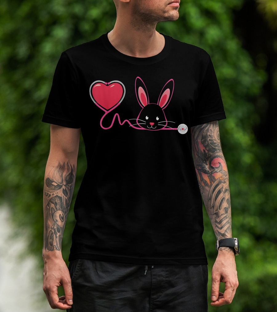 Nurse Bunny Easter Heart Stethoscope T-Shirt