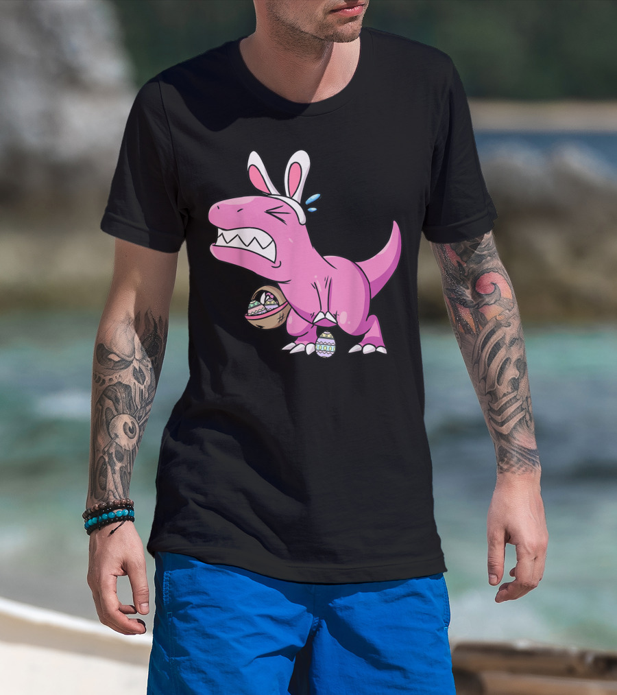 Easter Dinosaur Rex Egg Hunt Is On Funny T-Rex With Bunny Ears And Basket T-Shirt