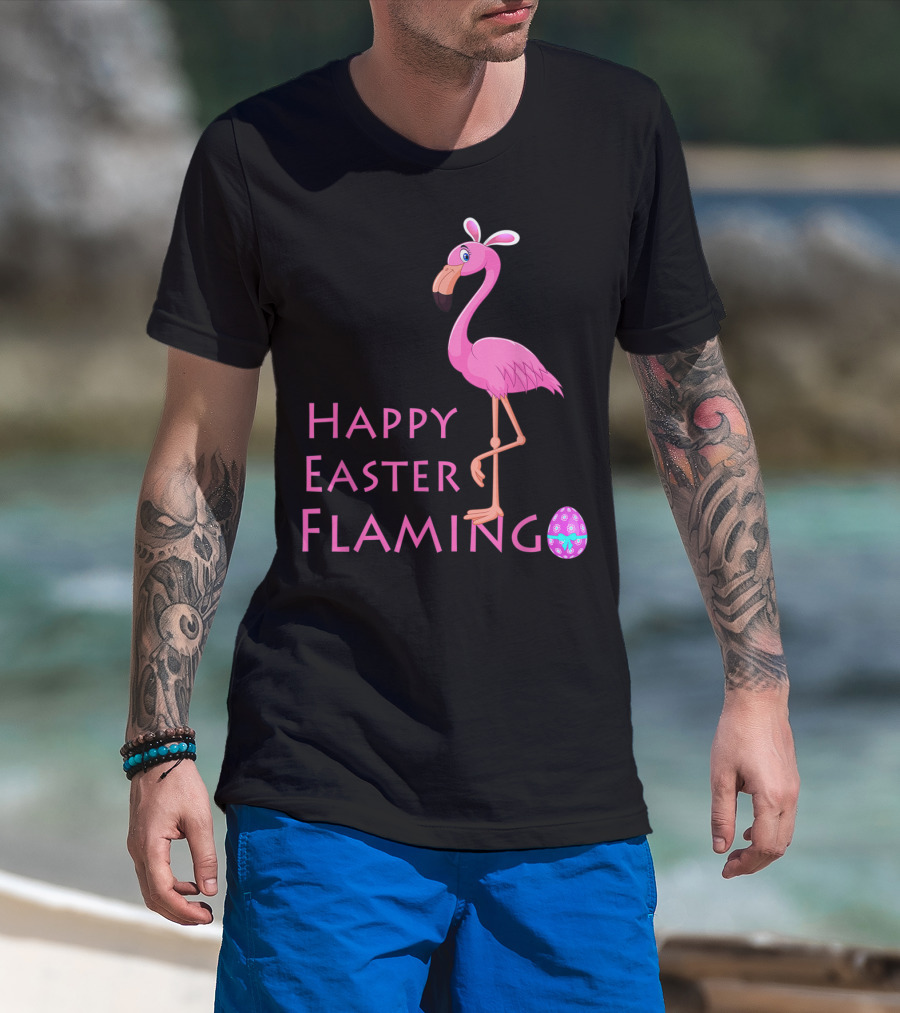 Happy Easter Flamingo Pink Bird Eggs Basket Women T-Shirt