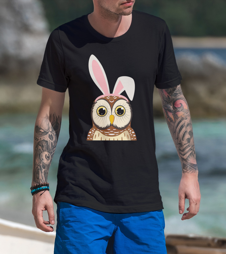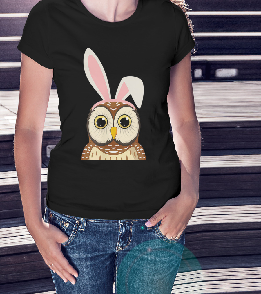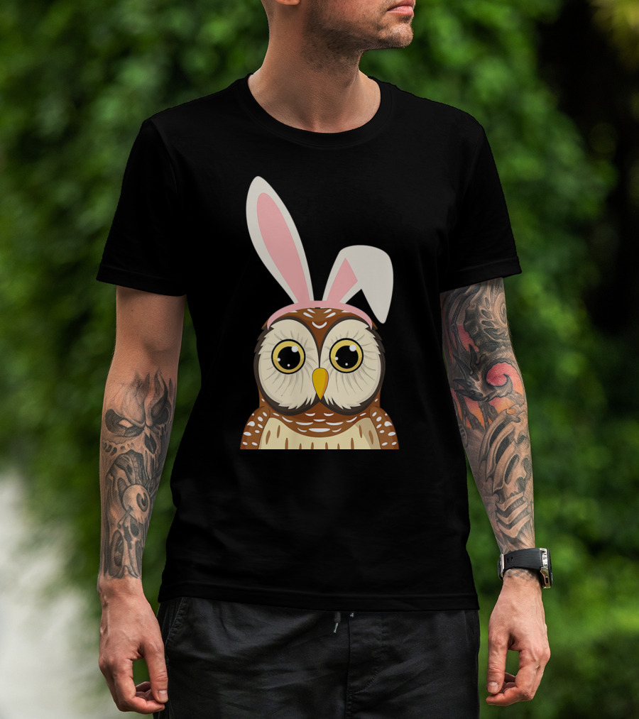Funny Owl Bunny Ear Easter Egg Hunting Rabbit Day T-Shirt