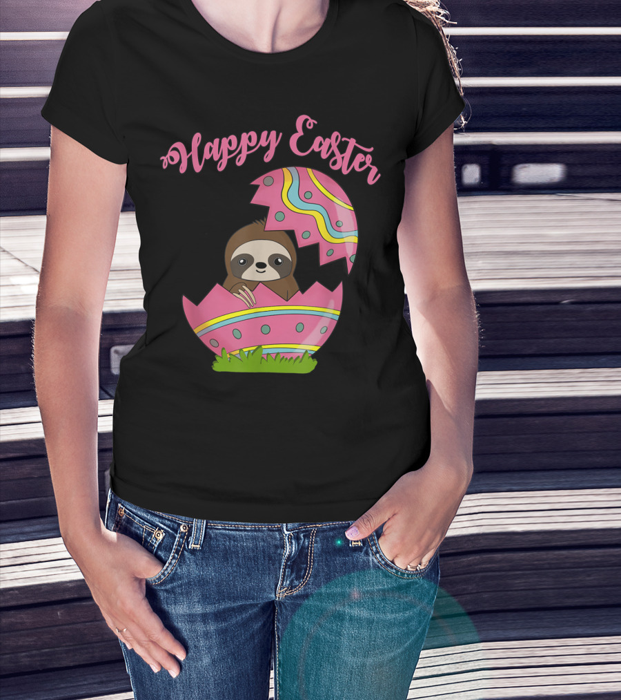 Happy Easter Sloth In Colorful Easter Egg T-Shirt