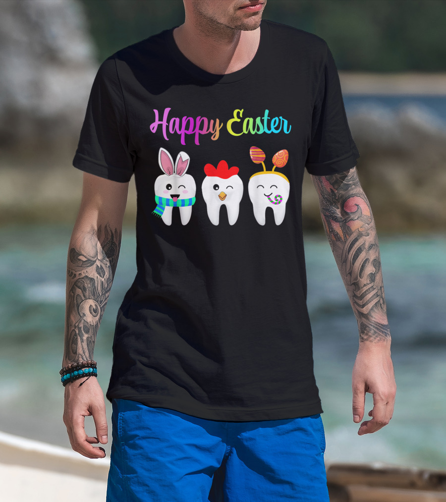 Happy Easter Tooth Bunny Chick Rabbit Eggs T-Shirt