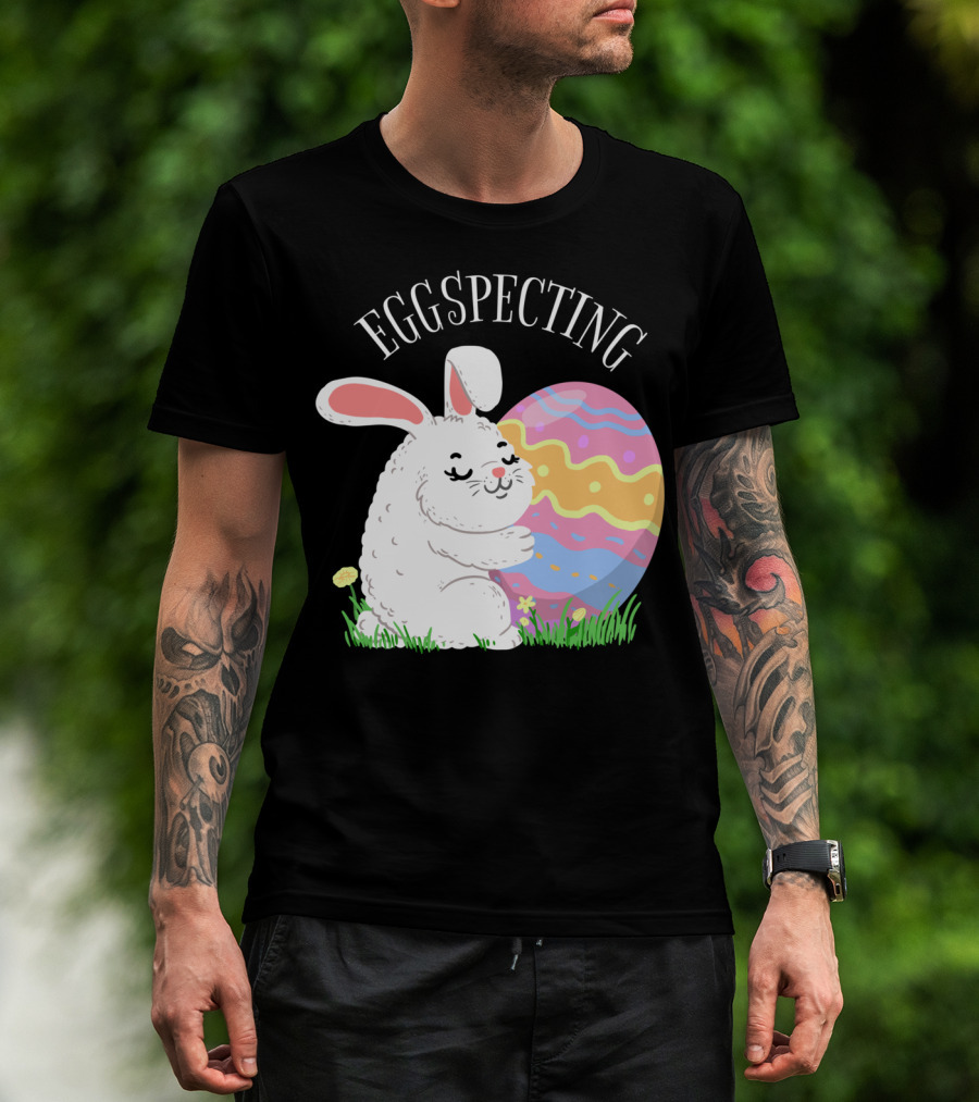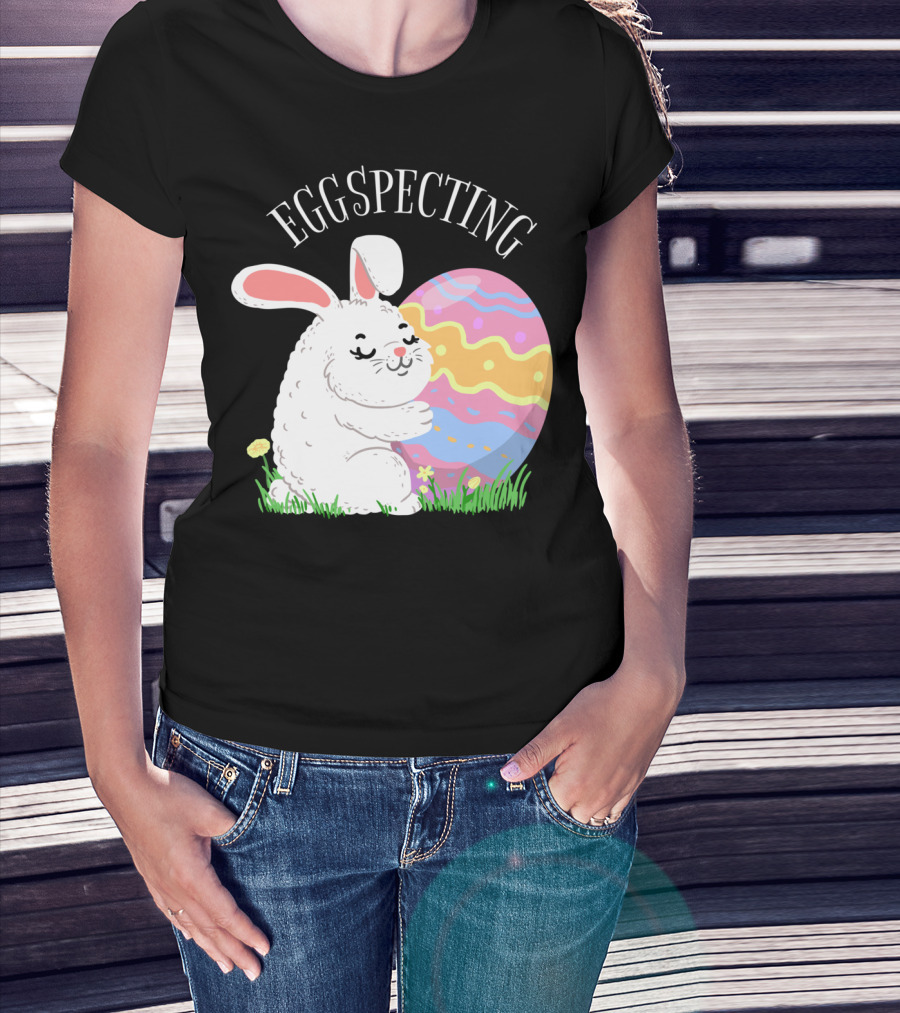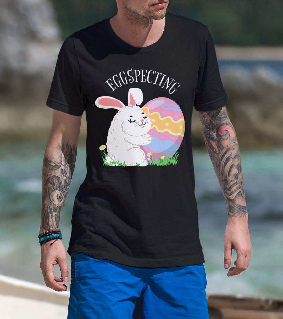 Eggspecting Easter Bunny Hugging Colorful Egg Pregnancy Announcement T-Shirt