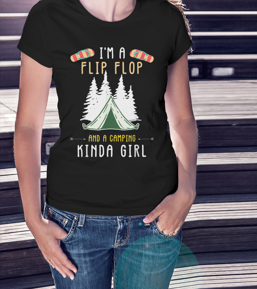 I'm A Flip Flop And A Camping Kinda Girl With Tent And Trees T-Shirt