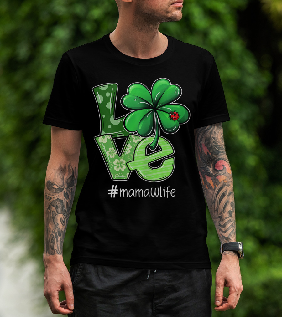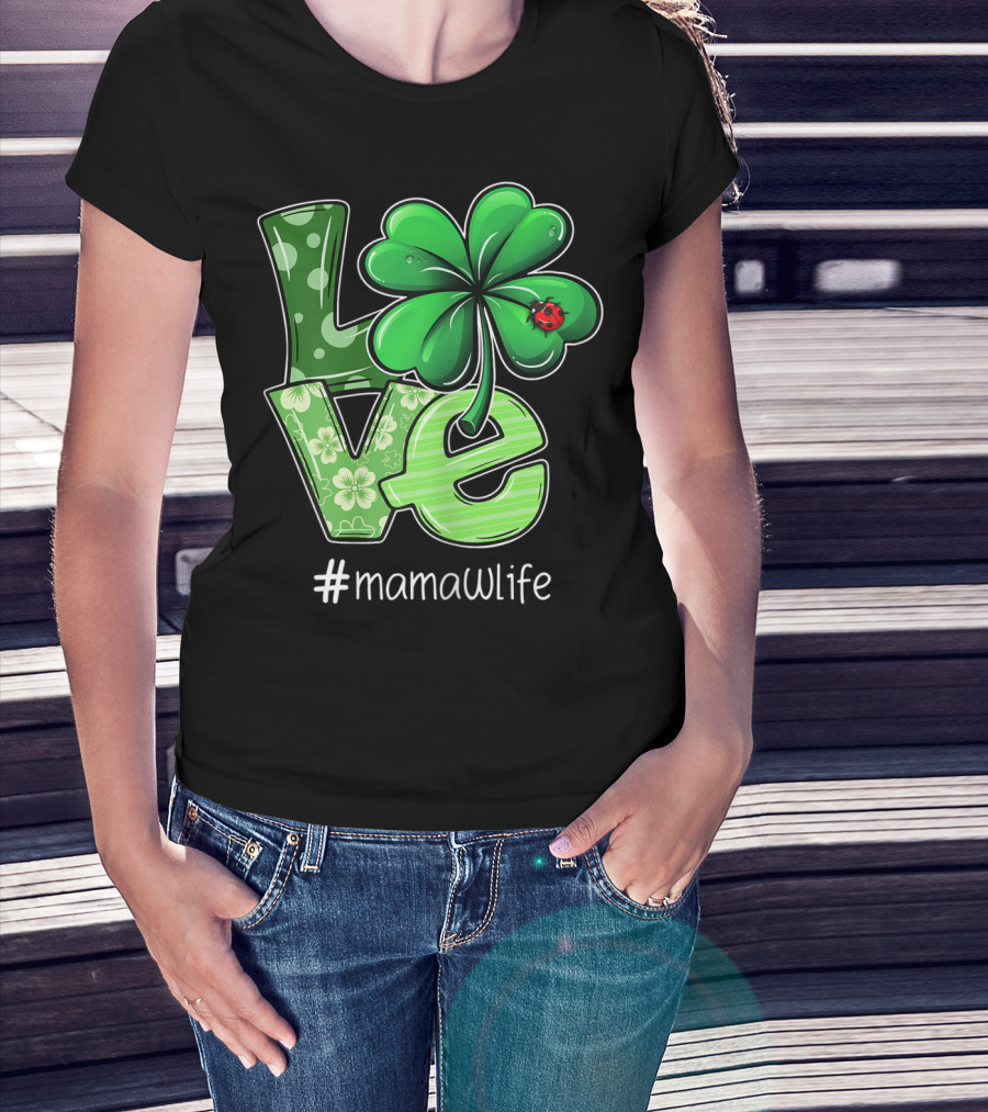 St Patricks Day LOVE Shamrock Clover Ladybug #mamawlife T-Shirt