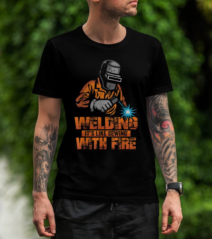 Welding It's Like Sewing With Fire Welder Men Operator T-Shirt