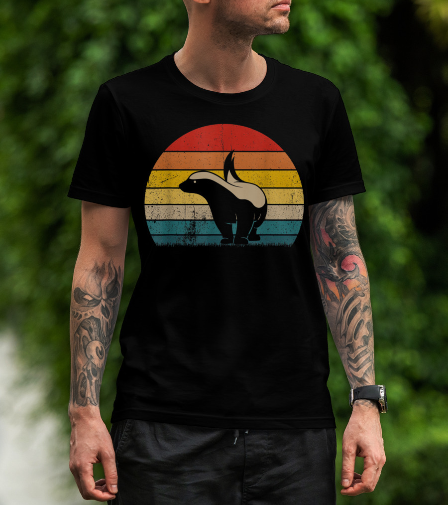 The Honey Badger Vintage Sunset Silhouette Retro Style Animal T-shirt is designed for everyday wear and a consistent fit. Fabric is pre-shrunk ring-spun cotton with durable stitching. See the size chart below for exact measurements.
