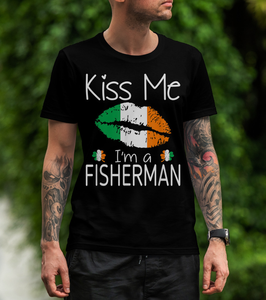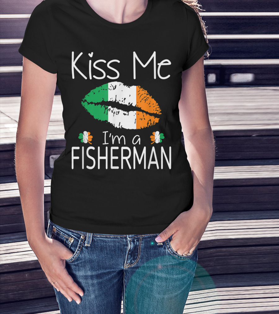 Kiss Me I'm A Fisherman Irish Flag Lips St Patrick's Day T-Shirt