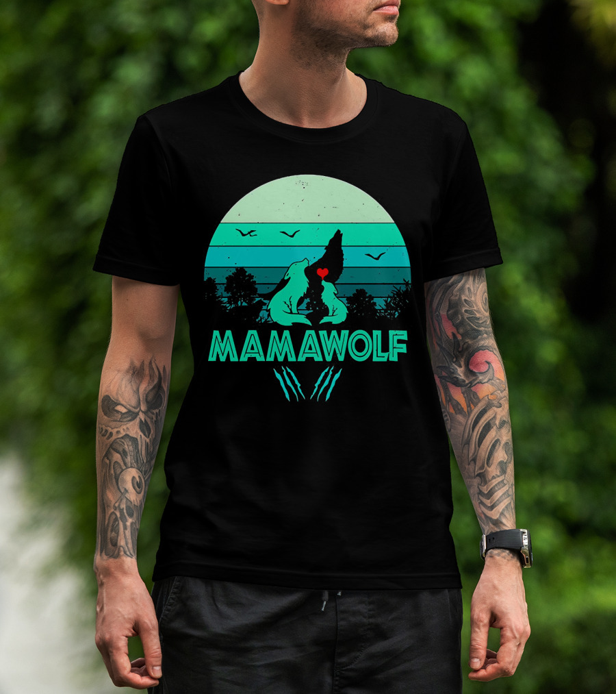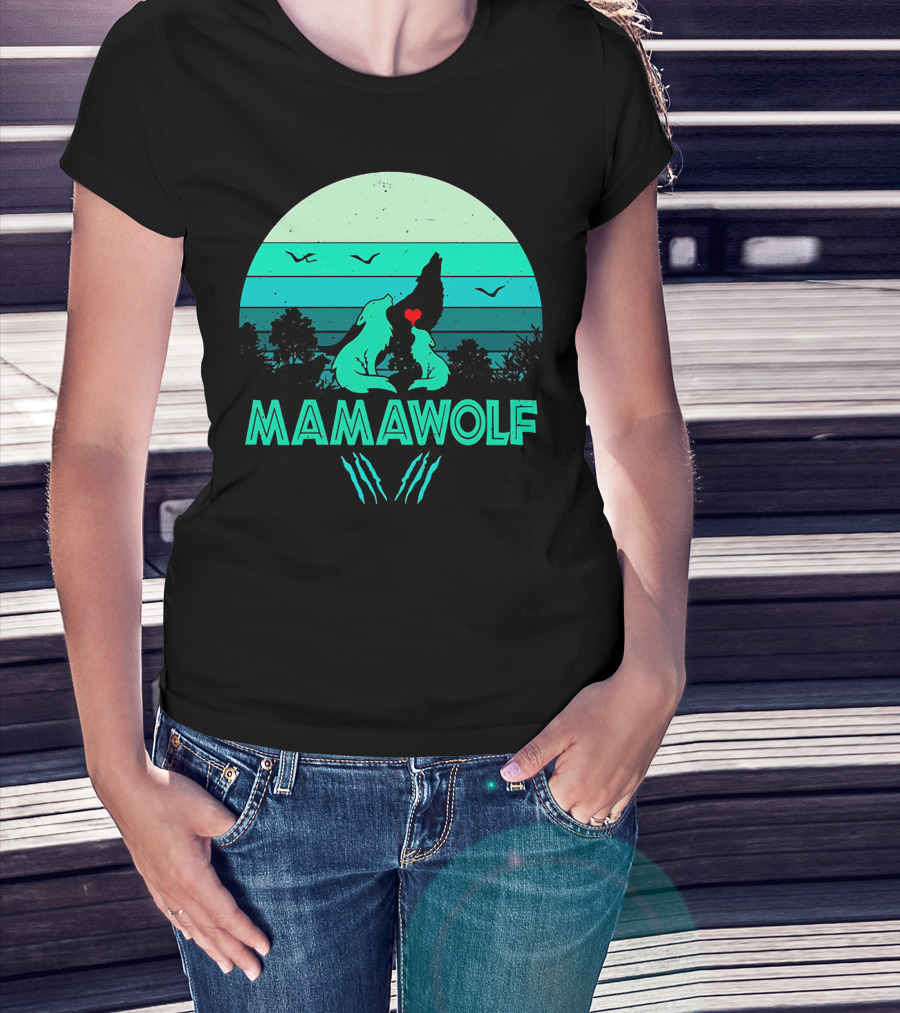 MAMAWOLF Babies Mom Vintage Wolf Heart Moon T-Shirt