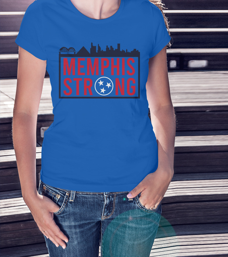 The MEMPHIS STRONG Tennessee Skyline Three Stars T-shirt is designed for everyday wear and a consistent fit. Fabric is pre-shrunk ring-spun cotton with durable stitching. See the size chart below for exact measurements.