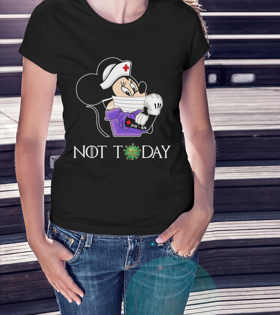 ICU RN Not Today Nurse With Face Mask And Cartoon Character T-Shirt
