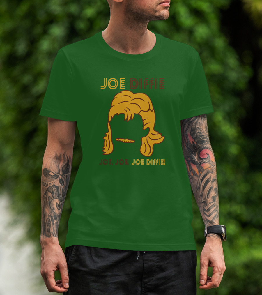 The JOE DIFFIE JOE, JOE, JOE DIFFIE T-shirt is designed for everyday wear and a consistent fit. Fabric is pre-shrunk ring-spun cotton with durable stitching. See the size chart below for exact measurements.