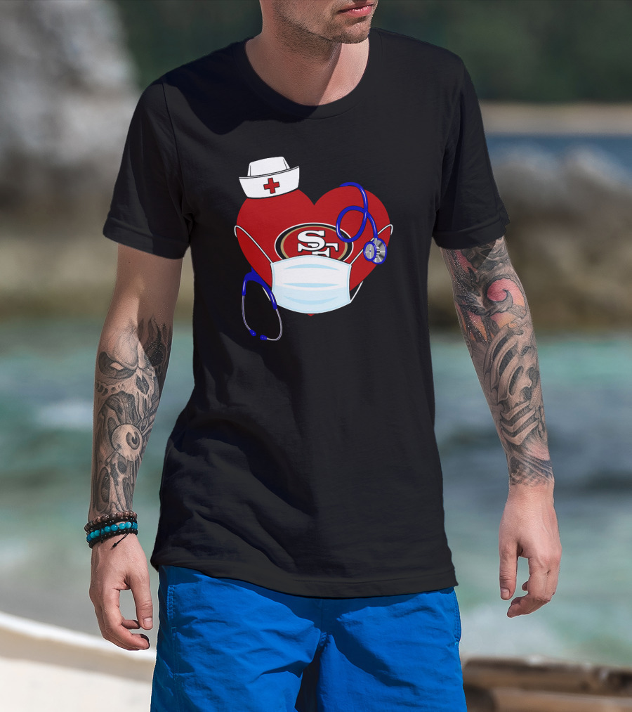 San Francisco 49ers Heart Stethoscope Nurse Mask T-Shirt
