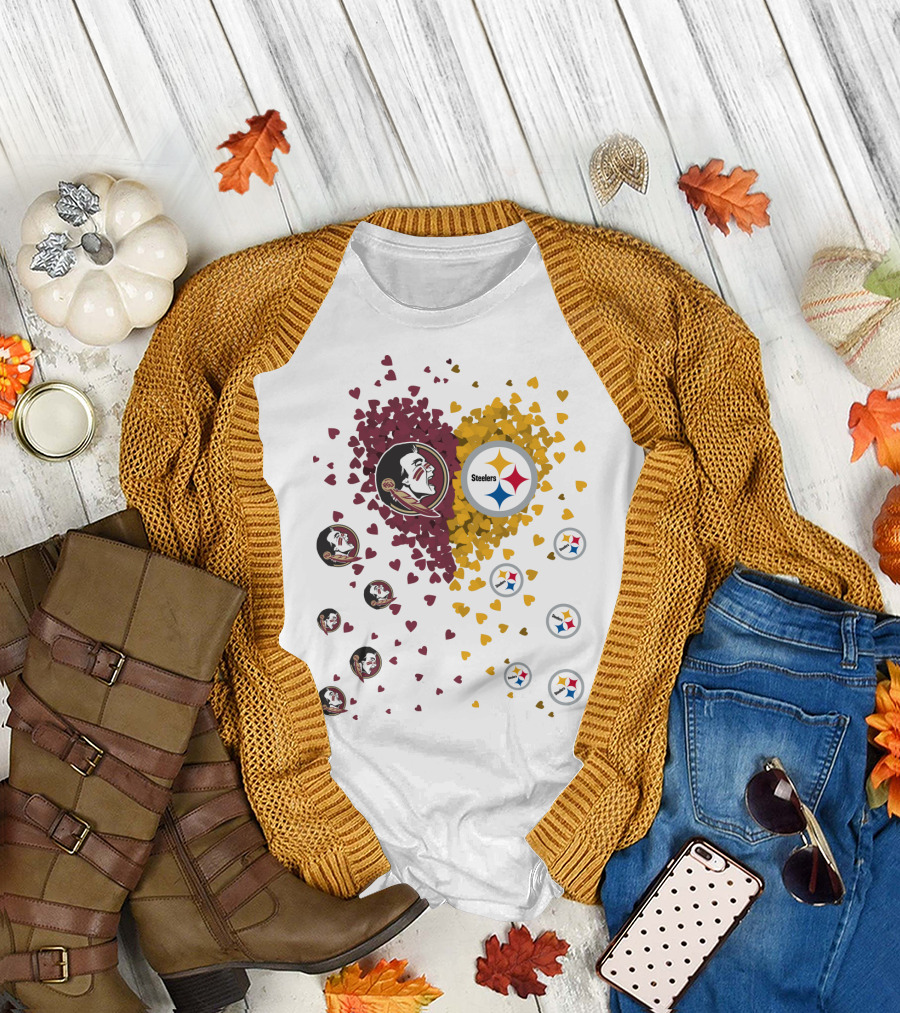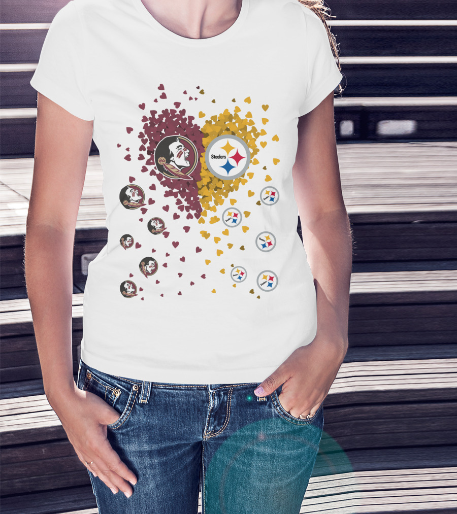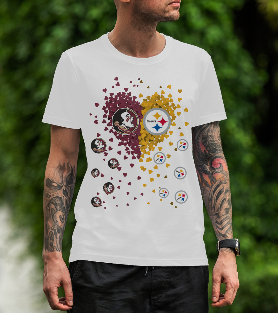 Heart Seminoles Steelers Logo Fan Collage T-Shirt