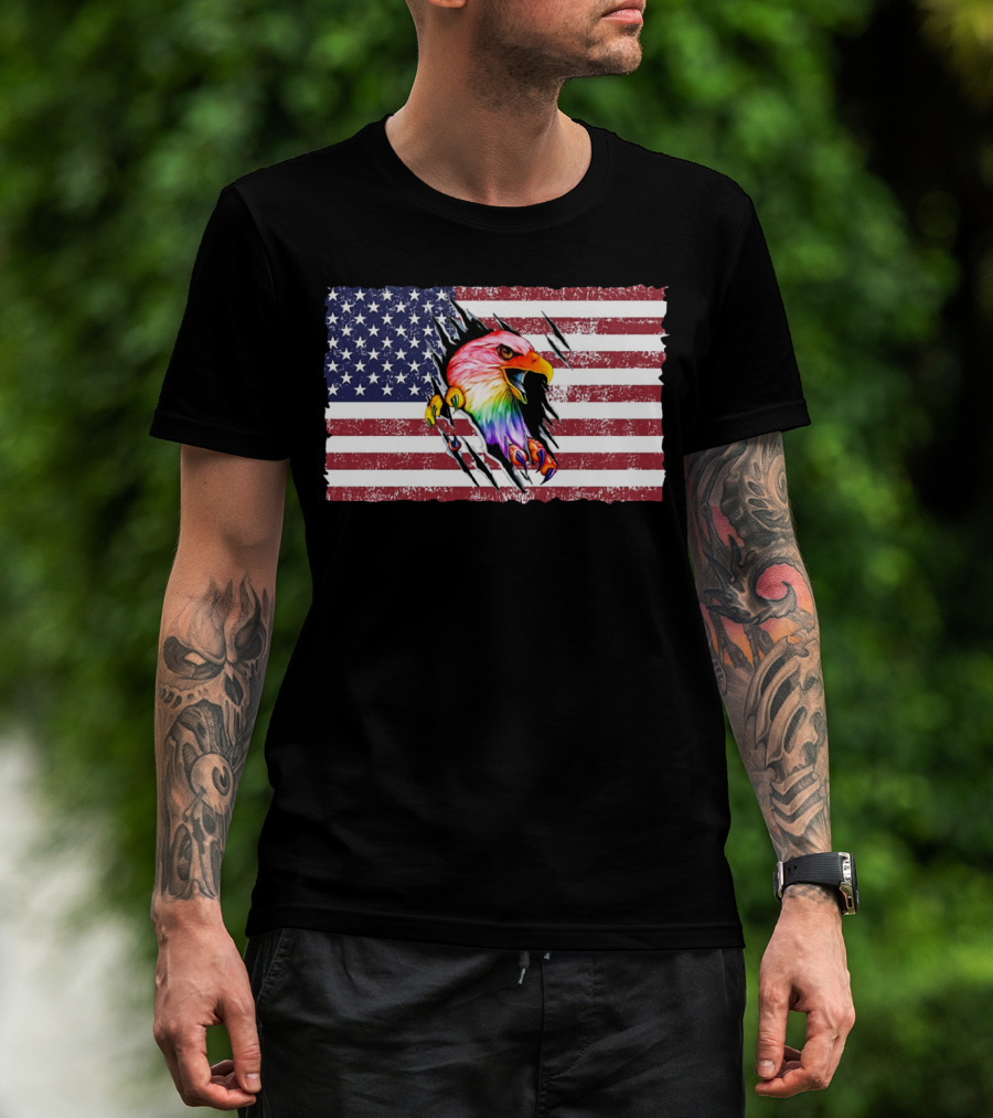 Eagle Rainbow Pride American Flag Burst T-Shirt