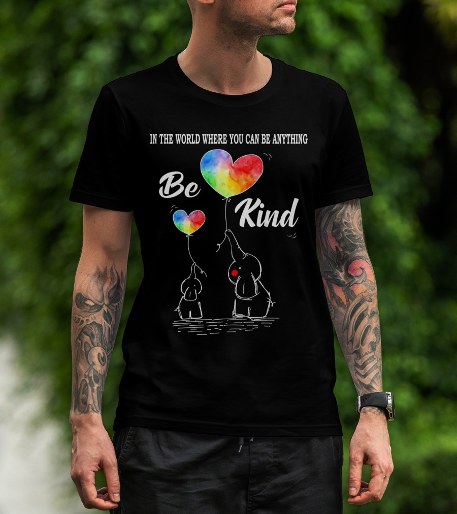 In The World Where You Can Be Anything Be Kind Elephant Rainbow Hearts T-Shirt