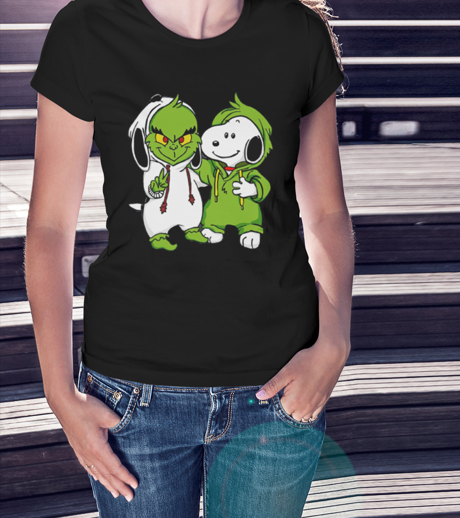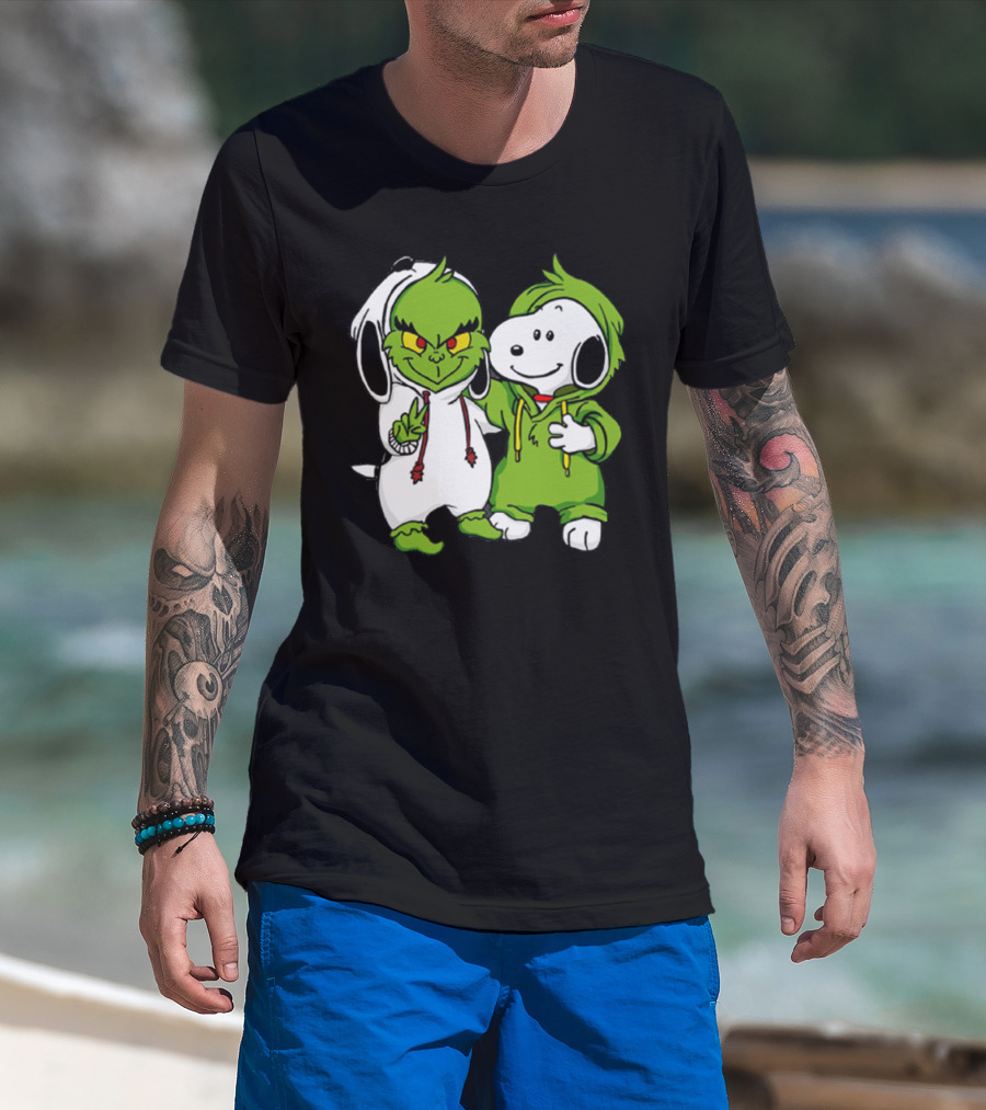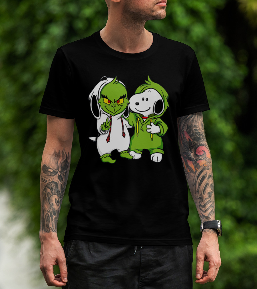 Grinch And Snoopy Christmas Crossover Characters In Festive Hoodies T-Shirt