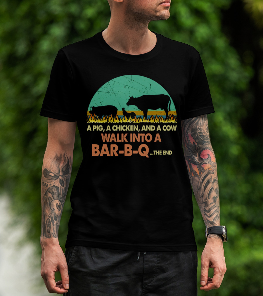 A Pig A Chicken And A Cow Walk Into A Bar B Q The End Fire Silhouette Scene T-Shirt