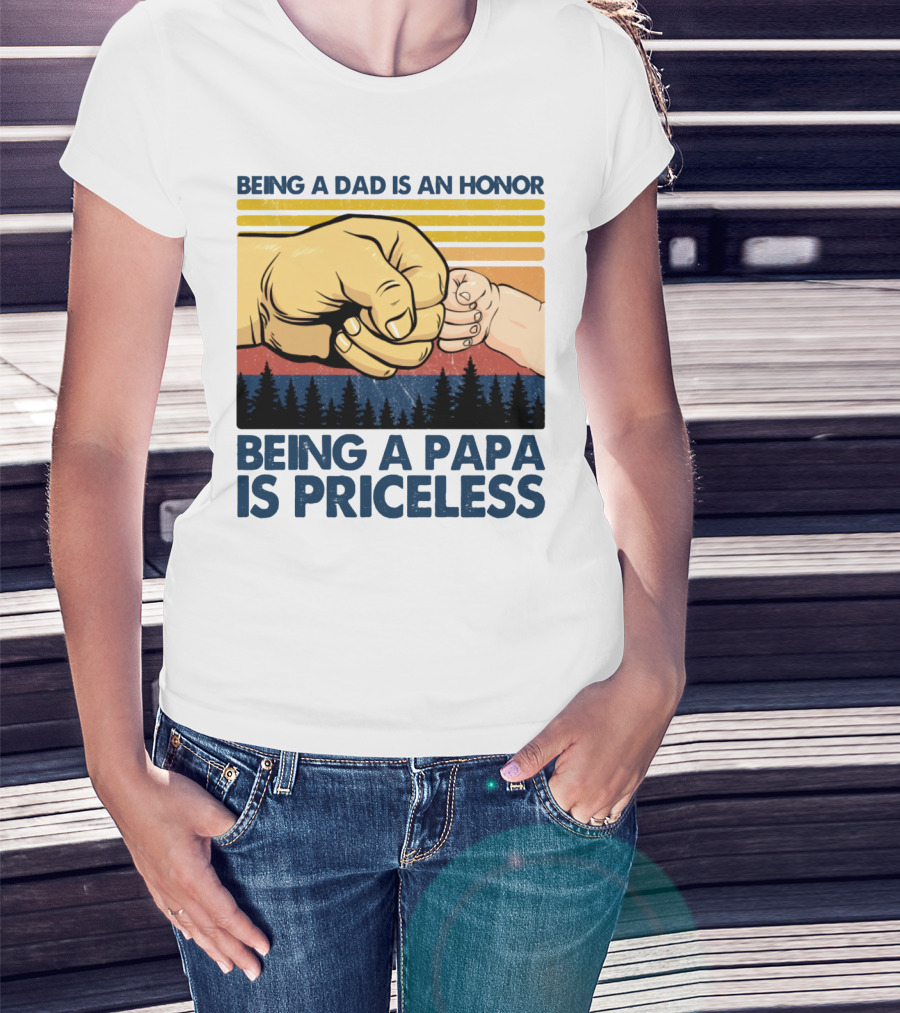 Being A Dad Is An Honor Being A Papa Is Priceless Fist Bump Sunset Forest Motif T-Shirt