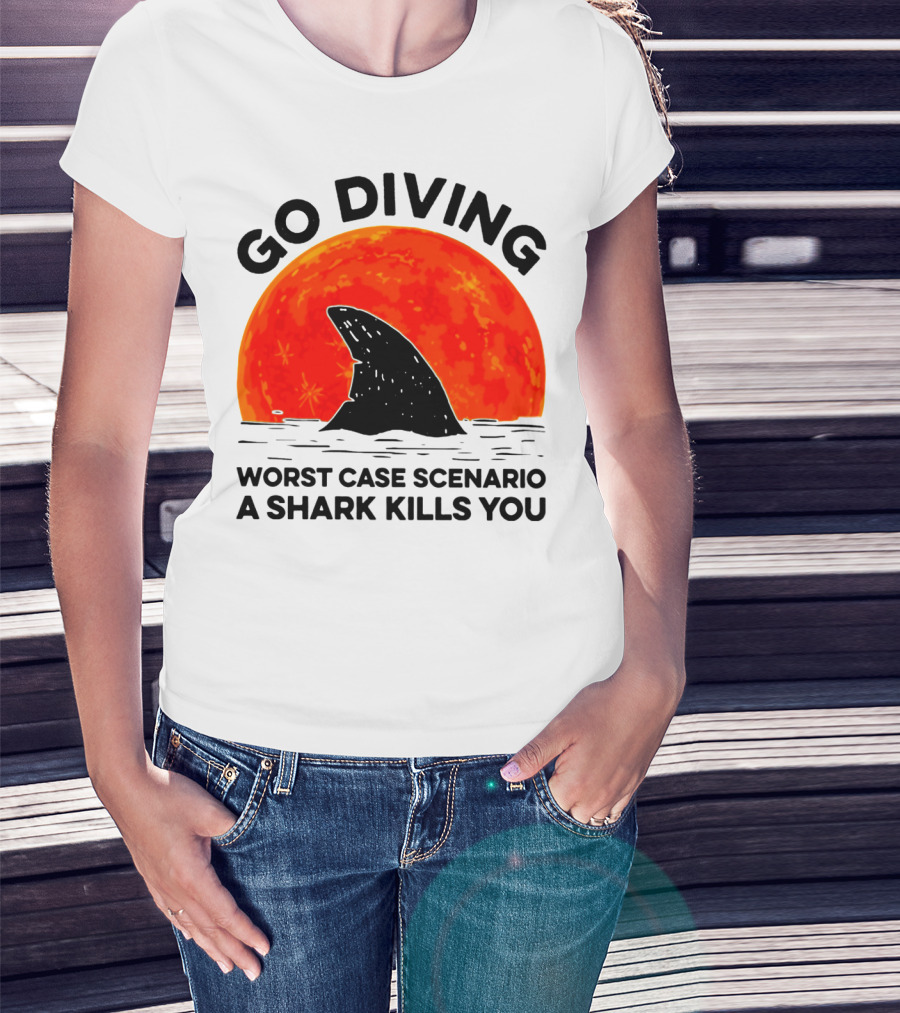 Go Diving Worst Case Scenario A Shark Kills You Shark Fin Sunset T-Shirt