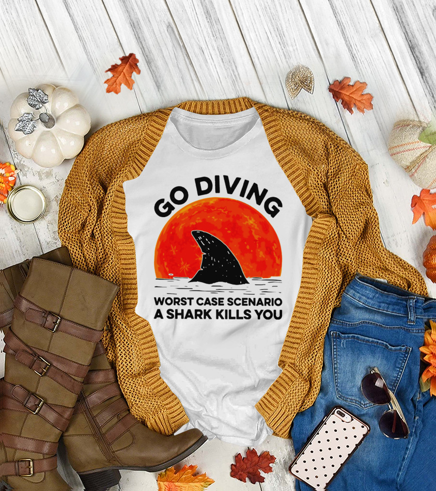 How much will this Go Diving Worst Case Scenario A Shark Kills You Shark Fin Sunset shirt shrink?